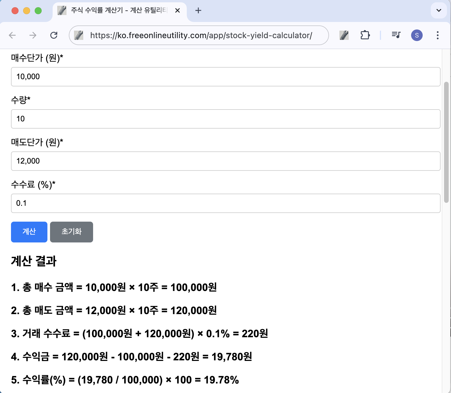 - 주식 수익률 계산기 페이지로 이동합니다.