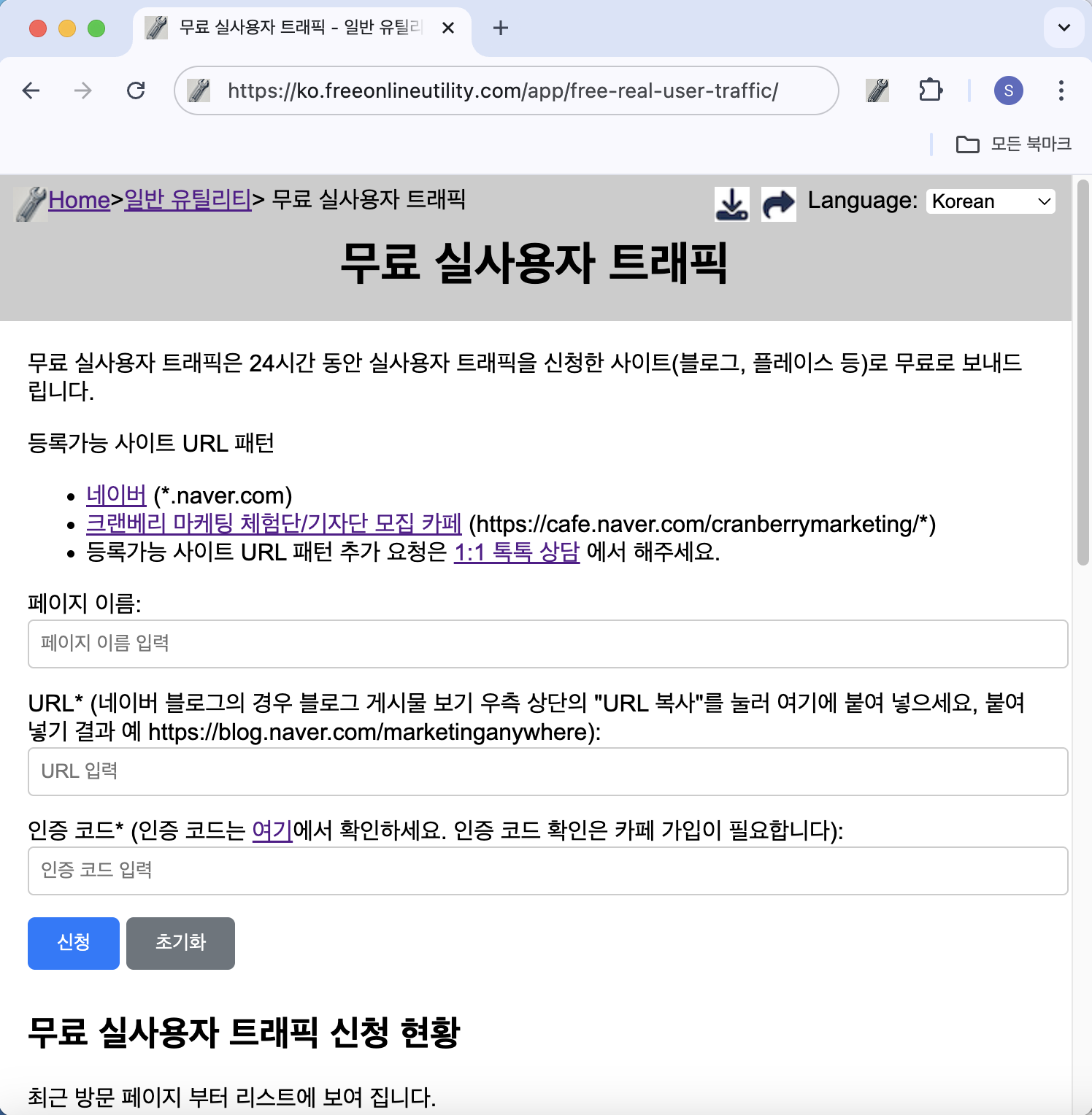 - 무료 실사용자 트래픽 신청 페이지로 이동합니다.