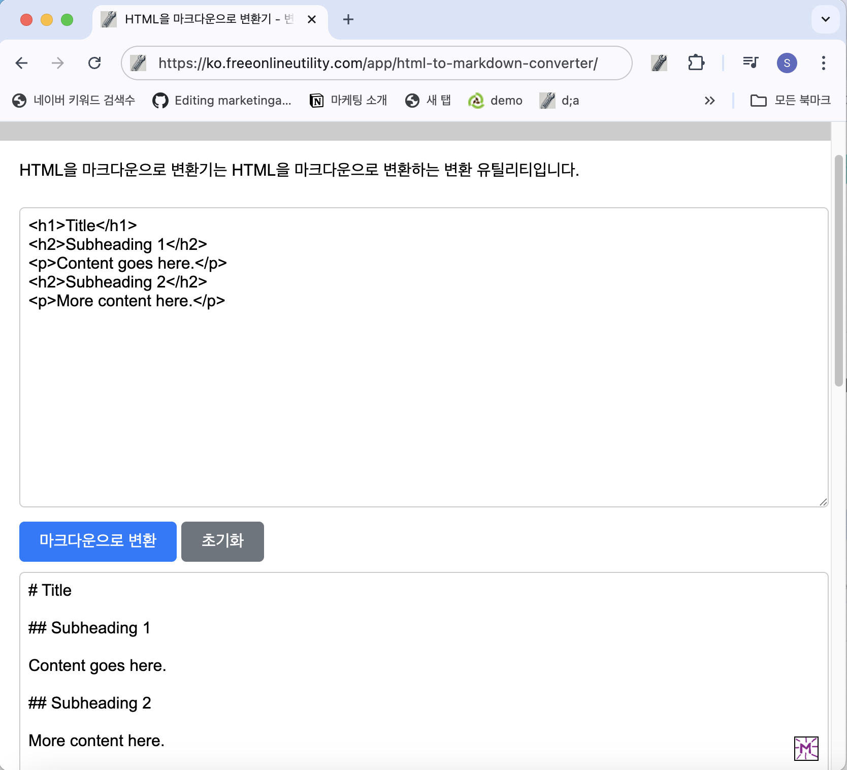 - HTML을 마크다운으로 변환기 페이지로 이동합니다.