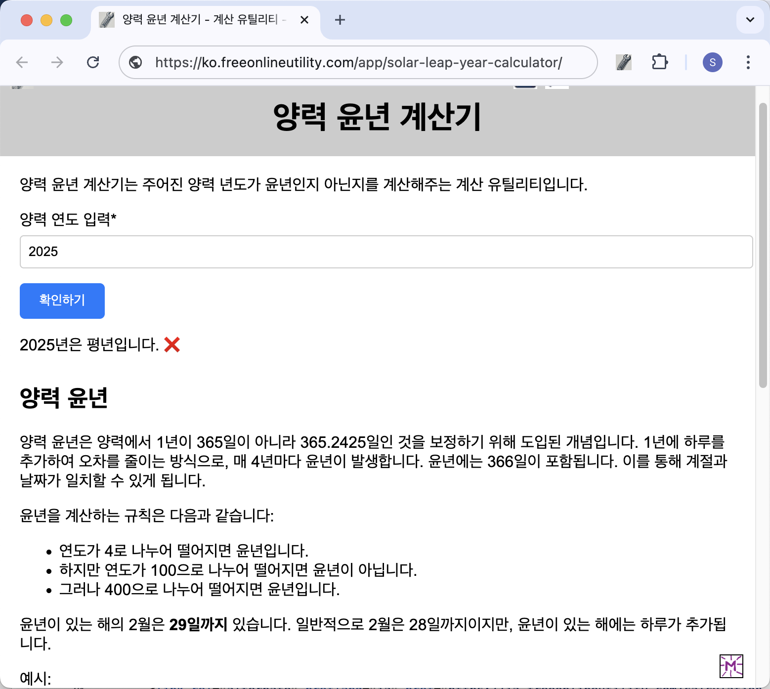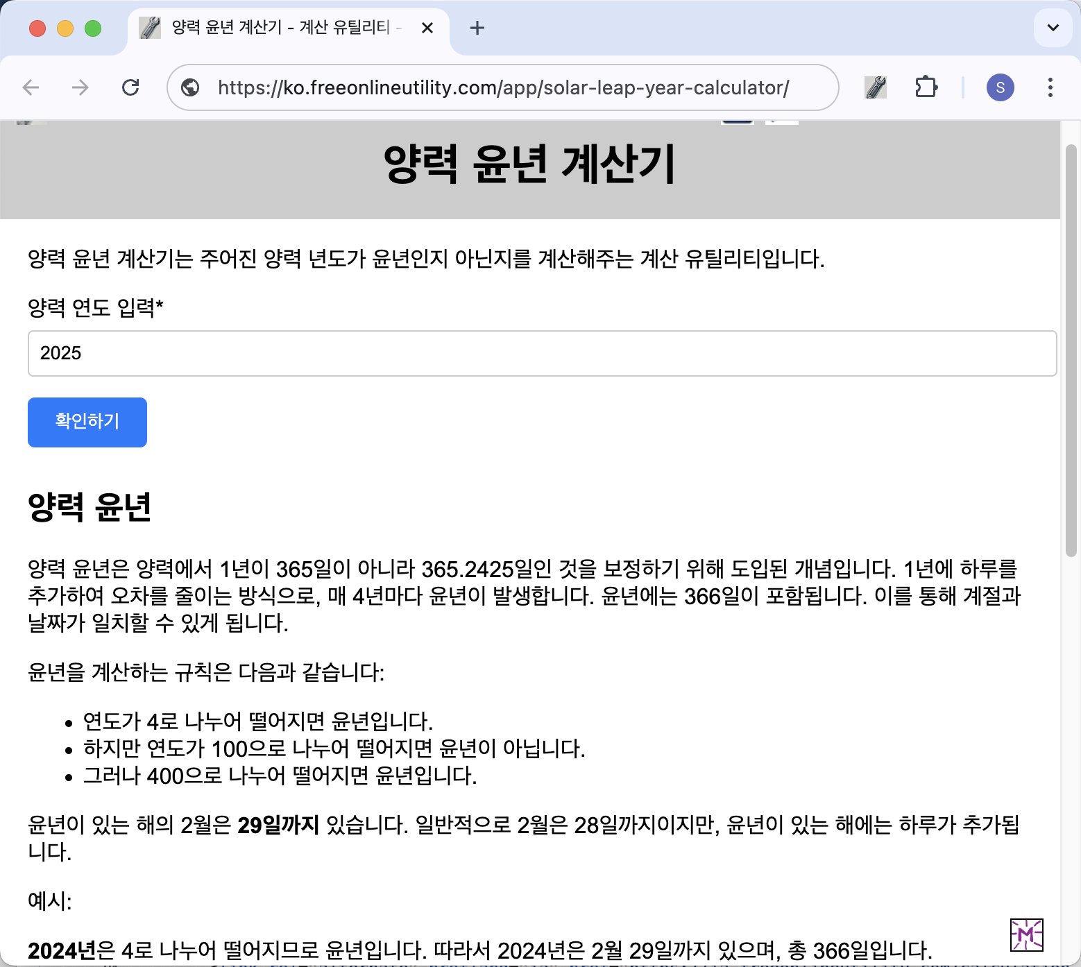 - 윤년 계산기 페이지에 접속합니다.