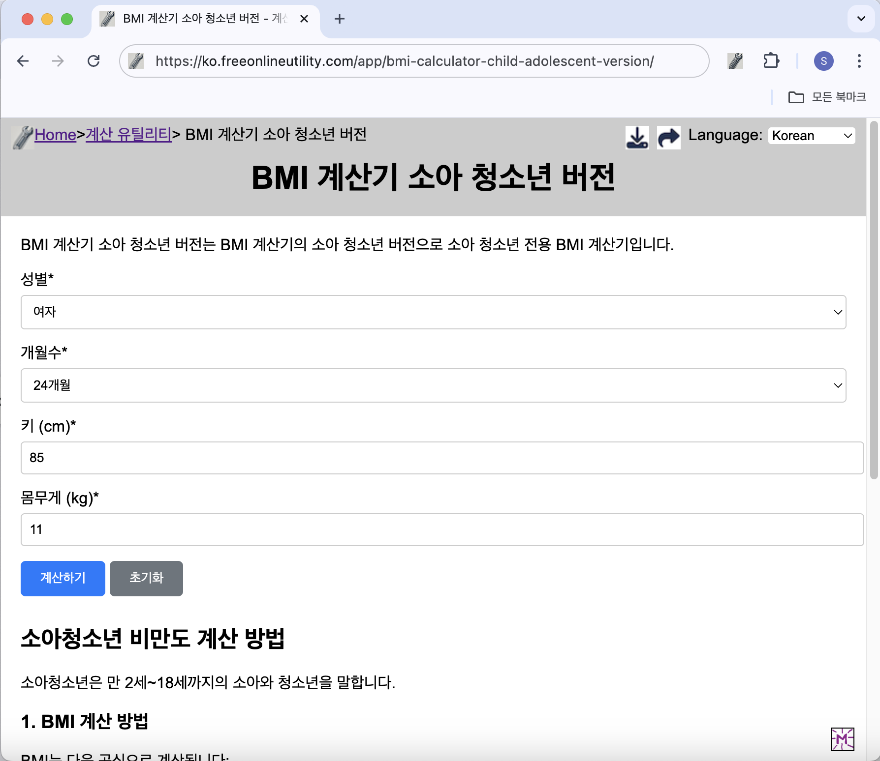 우리 아이 건강 확인 - 소아 청소년 BMI 계산기