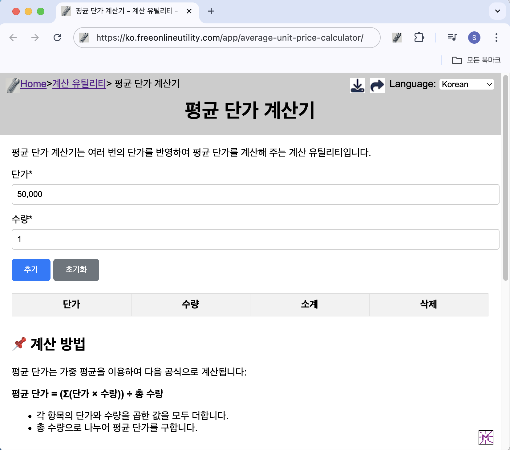 평균 단가 계산기 - 여러 단가의 평균을 쉽게 계산하세요