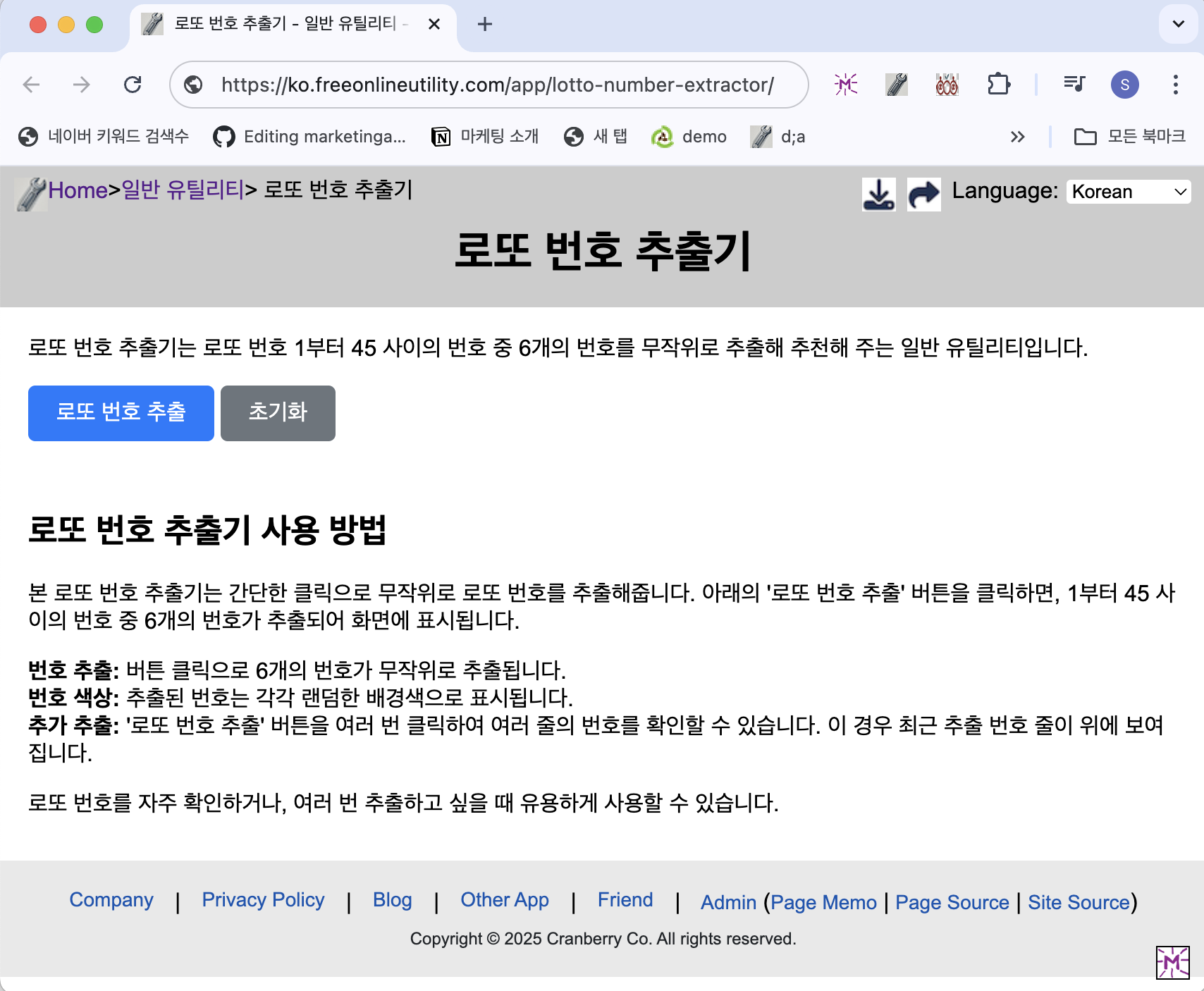 로또 번호 추첨기는 1부터 45까지의 숫자 중 6개의 번호를 무작위로 추출해주는 온라인 도구입니다. 클릭 한 번으로 오늘의 행운 번호를 빠르게 생성해보세요. 별도 설치 없이 웹 브라우저에서 즉시 사용 가능하며, 누구나 무료로 이용할 수 있습니다.👉 로또 번호 추첨기 바로가기 로또 번호 추첨기의 주요 기능무작위 번호 생성: 클릭 한 번으로 1~45 사이의 숫자 중 6개 번호를 자동 추첨간편한 사용: 회원가입이나 설치 없이 즉시 사용 가능시각적 재미: 번호마다 무작위 배경 색상이 적용되어 보는 재미도 제공여러 번 추첨 가능: 버튼을 여러 번 클릭해 다양한 번호 조합 확인👉 무료 로또 추첨기 이용하러 가기로또 번호 추첨기 사용 방법로또 번호 추첨기 웹페이지에 접속합니다.‘로또 번호 추출’ 버튼을 클릭하여..
